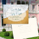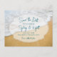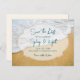 Sand and surf save-the-date postcards with custom text. Traditional wording marriage announcement for couples planning a beach destination wedding. White foamy water is washing up on a brown sandy beach and is the backdrop for calligraphy style font. On the back lines are provided for addressing, or delete them in the "customise" area.