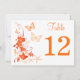 This double-sided nautical beach theme inspired wedding table number card has bright orange hibiscus type tropical flowers and decorative scrolls on it, along with sand beige butterflies, starfish, a scalloped shell and a seahorse that matches the wedding invitation shown below. ****PLEASE NOTE that you MUST change the number 12 to EACH number you need, add that card to your cart and then return to repeat that process until you have all the number you need in your cart. Quantity discounts may apply when you put them all in your cart. It would be perfect for a destination wedding, a beach wedding, or for anyone getting married in the tropics. If you require any matching items in this design, or if you need help customising it with your info, please email niteowlstudio@gmail.com. ****PLEASE NOTE that everything will print as it appears on your monitor. I will not see your card once you order it and Zazzle will not edit anything.