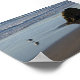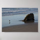 a colour photographic image of a Sand Piper On The Beach on wet sand and a big rock on the beach