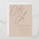 A beautiful typography based wedding invitation featuring your initials in oversized rose gold foil script lettering at the top, in tone on tone shades for a watermark effect. Personalise with your wedding details in classic serif lettering aligned at the lower right. Our Sand colorway is an elegant mix of earth tone shades, with pale cream and terracotta clay lettering on a soft sandy beige background.