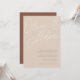 A beautiful typography based wedding invitation featuring your names in oversized script lettering at the top, in tone on tone shades for a watermark effect. Personalise with your wedding details in classic serif lettering aligned at the lower right. Our Sand colorway is an elegant mix of earth tone shades, with pale cream and terracotta clay lettering on a soft sandy beige background.