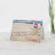 Sand snowman on beach with ocean holiday card