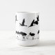 Wonderful collage of digital silhouette art from photography of Sandhill Crane Birds running to take off, and flying, is on this Mug.
