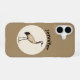 A sandhill crane in a circular frame on a brown background makes an simple, minimalist, and still eye-catching iPhone case that's perfect for anyone who loves birds, wildlife, and the outdoors.