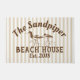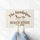 Get a beach vintage vibe with this sand piper birds doormat! Beachy chic sandpiper doormat featuring the words "beach house" with coastal vintage white stripes and est. date.