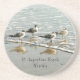 Cute little sandpipers waiting for breakfast to wash in at the ocean shore. Add your favourite beach name or your own name to personalise these coasters.