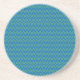 A stylish, sandstone coaster, with a geometric pattern in trending Emerald Green and Monaco Blue.
