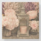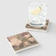The coasters are gorgeous, a quality feel and heavy weight. They look like a precious archeological find. A rustic stone juxtaposed with a modern floral black and white print. I like the way the print goes slightly imperfect on the cut stone edges giving them a kind-of natural beauty.