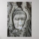 Sandstone head of Buddha surrounded by tree Poster