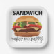 Sandwich Makes Me Happy Party Paper Plate