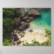 Sandy Beach Cove with Green Trees, Rocks & Ocean Poster