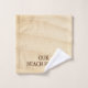 A lovely bathroom towel set featuring a wavy sandy beach design with your custom texts. Great for a beach house or a coastal guest house or bed and breakfast.