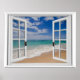 Sandy Beach Ocean View Faux Window Poster