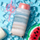 Seltzer Can Cooler Koozie Sleeve Foam Wrap printed with Sandy Beach Ocean Waves Abstract Watercolor artwork design illustration by TheFabricSeal print on demand shop at Zazzle.com #ZazzleMade https://www.zazzle.com/store/thefabricseal. This salty watercolor abstract painting design coastal sandy beach, summer tan, blue ocean crashing waves and cloudy blue sky on the horizon featuring colour palette hues sand, tan, beige, blue, navy blue, sky blue, purple, turquoise, brown, white, grey and grey.