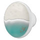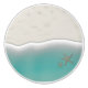 Summer, beach and the ocean. Mint green sea water with two starfish, a sandy beach with bird feet print.