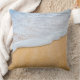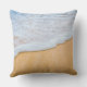 Pillow with a photograph of a golden brown sandy beach with white foamy surf.
