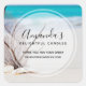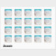 Thank you for your order business stickers with a gorgeous photograph. Tropical blue water and foamy surf in the background. A collection of seashells and stems set on a white sandy beach.
