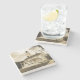 The coasters are gorgeous, a quality feel and heavy weight. They look like a precious archeological find. A rustic stone juxtaposed with a modern floral black and white print. I like the way the print goes slightly imperfect on the cut stone edges giving them a kind-of natural beauty.