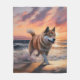 Sandy Paws Akita Dog on Beach Sunset Fleece Blanket