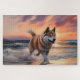 Sandy Paws Akita Dog on Beach Sunset Jigsaw Puzzle