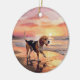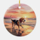 Sandy Paws Beagle Dog on Beach Sunset Ceramic Ornament