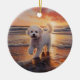 Sandy Paws Bichon Frise Dog on Beach Sunset Ceramic Ornament