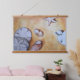 The polyester fabric displayed many wrinkles and several sharp creases throughout. At the bottom of the tapestry, I noticed a bulge in the fabric because it was not pulled tight enough before being connected to the wooden boards. It took me over an hour to spay water on the tapestry before putting it on an ironing board where I used a warm iron over a polyester cloth to remove the wrinkles and creases in the material. I was able to get out the wrinkles and creases that made that tapestry look as beautiful as its picture.