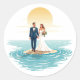 Includes 20 small stickers on one sheet. Celebrate your love with this romantic sticker featuring a blissful bride and groom on a tiny island at sunset!