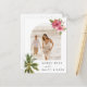 Share the love and joy of your beachfront celebration with our Sandy Toes Beach Wedding Photo Save the Date postcard. The front features a an arch photo of the couople, a palm tree and vibrant tropical flowers, accompanied by the whimsical phrase 'sandy toes and salty kisses.' It sets the perfect tone for your seaside affair. On the back, all the essential wedding details are elegantly displayed. Printed on high-quality cardstock, this postcard combines style and convenience, making it easy to announce your special day with a touch of coastal charm. Let the countdown to sandy toes and salty kisses begin...