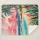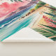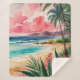 A peaceful tropical shoreline where golden sand meets rolling turquoise waves. Lush palm trees sway under a dreamy pink and teal sunset. The perfect escape for those who love the beach and ocean breeze.
