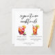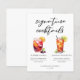 This chic signature cocktails menu sheet features simple black typography above 2 drinks and their ingredients for your wedding bar. A cute summer Sangria and Long Island iced tea drawing add a cool flair to your bar menu. Complete with the couple's names and date for their reception.