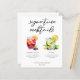 This chic signature cocktails menu features custom black typography above 2 drinks and their ingredients for your wedding bar. A cute summer Sangria and Mojito drawing add a cool flair to your bar menu. Complete with the couple's names and date for their reception.