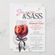 Celebrate the bride-to-be in style with our Sangria & Sass bridal shower invitation! This elegant design features a chic sangria glass adorned with a black bow and pearl accents, perfectly capturing the essence of sophistication and fun.