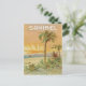 Vintage Florida art beach scene of sunset and palm trees along the coast with the name "Sanibel" in a vintage font at the top captures old Florida.