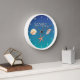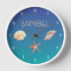 Live on Sanibel Island time with this Sanibel design with watercolor style seashells and starfish floating on a blue and teal background. Celebrate Florida memories with a beach themed Sanibel clock.