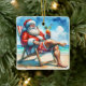 Personalised Christmas ornament. An ai watercolor illustration of Santa sitting on the beach drinking a Bloody Mary.