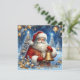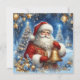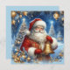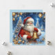 Santa and Christmas tree, jingle bells, blue & gold flat holiday card. Beautiful customisable Christmas card options to add your own season greetings on the back of the card.