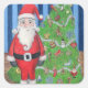 This portrait of Santa is an original coloured pencil illustration by Angela Hoard-Dunn. These stickers show a cute Santa Claus in front of a Christmas tree that is decorated with many fun and unique ornaments. Santa is smiling shyly and looks like he is getting his photo taken.