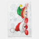 Santa and Elf Cute and funny Characters Peeking Tea Towel