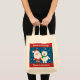 The printing came out very well, better than I had anticipated. The natural color fabric is sturdy with strong seams and comfortable handles. This tote fits easily over my shoulder. As it is filled, the bottom flattens out--very cool! I would buy this product again. This grocery tote holds a lot of groceries! The image quality was very good. The colors were a little darker than I had expected. The darkness may have been due to printing on a natural color fabric rather than on white. The cat design is attractively centered on the tote. The spirit of the design is very lively, just as it appears on the Zazzle website.
