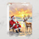 Santa and Reindeer at Beach Personalized Christmas Holiday Card