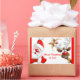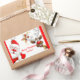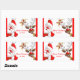A whimsical Christmas sticker with cartoon Santa Claus and his reindeer coming in from the sides of the red border. Coordinating pieces available in store.