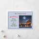 A personalised Christmas Card featuring Santa Clause riding through a village on his sleigh with his reindeer on a beautiful Christmas Eve with a full moon.