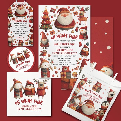 Make your child’s birthday extra magical with this festive invitation featuring adorable Santa animals dressed for Christmas fun. With cheerful holiday colours and playful details, this design blends the joy of a birthday celebration with the wonder of the season. Perfect for winter birthdays, it sets the stage for a merry gathering filled with laughter, friends, and festive spirit. A charming way to invite guests and create lasting holiday birthday memories.