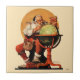 Artist: Norman Rockwell | Santa studies globe while holding book of "good boys"