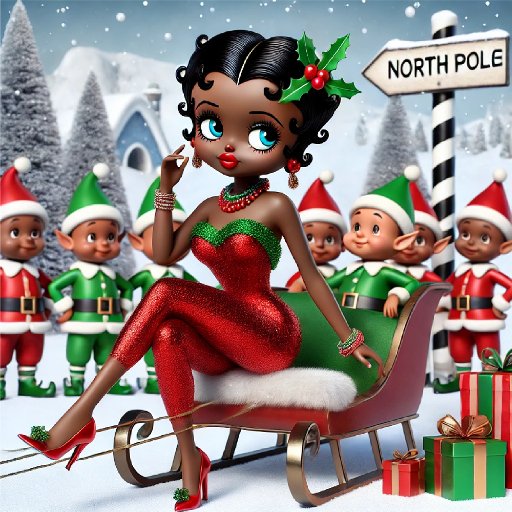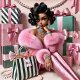Christmas gift wrapping with character toon beauty adorned with jewels surrounded by Tiffanys gift boxes