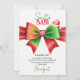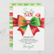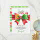 Red and green bow, Santa hat and snowflakes Christmas Santa Baby shower Thank You card. This festive Christmas baby shower Thank You card is adorned with a prominent, impressive red and green bow covered with snow and with a snowflake at its center and a Santa hat. The phrase "Santa Baby" is written in script and decorative typography. The reverse includes a playful pattern of varying red and green stripes, interspersed with charming snowflakes and snow.