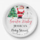 Santa Baby watercolor, winter, baby shower, gender neutral, party paper plate. Elegant, simple calligraphy, Baby shower party paper plate. Personalise it with your details.