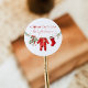 A festive round sticker featuring a watercolor Christmas baby clothesline. Perfect for sealing envelopes, favour bags, or party décor.