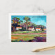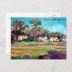This postcard features a landscape painting made with vinyl paints and coloured crayons of Mission Historical Park Santa Barbara, CA.